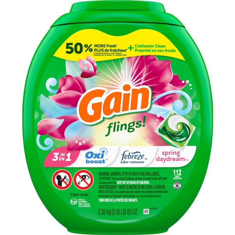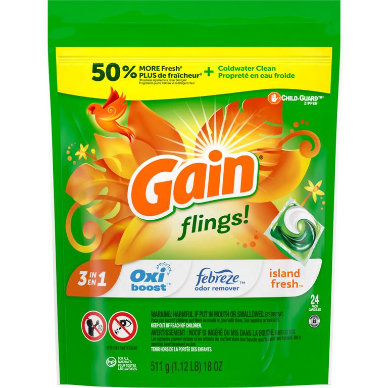 Save $1.00 ONE Gain Flings Laundry Detergent 14-19 ct OR Gain Plus Flings 9 ct (includes Super Flings) (excludes Gain Ultra Flings, Gain Liquid/Powder Laundry Detergent, Gain Essential Oils, Gain Liquid Fabric Softeners, Gain Fireworks, Gain Sheets, travel size).